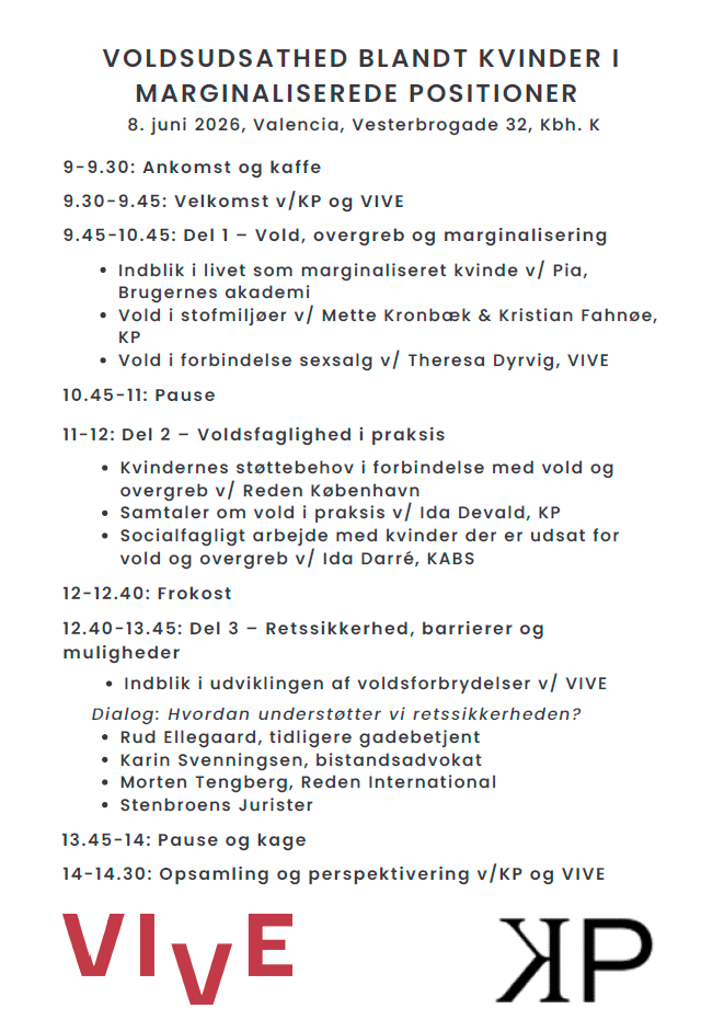 Dagen tager afsæt i to forskningsprojekter på VIVE og KP om voldsudsathed og marginalisering, som begge er finansieret af Offerfonden.