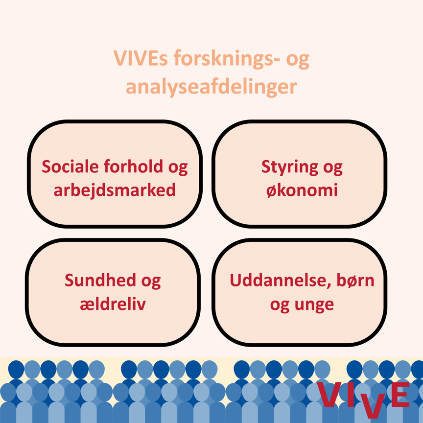 Fremover vil VIVEs forskere og analytikere være organiseret i fire afdelinger, der med omorganiseringen skal ruste os til endnu bedre at kunne levere viden, der fremmer velfærdssamfundets udvikling.