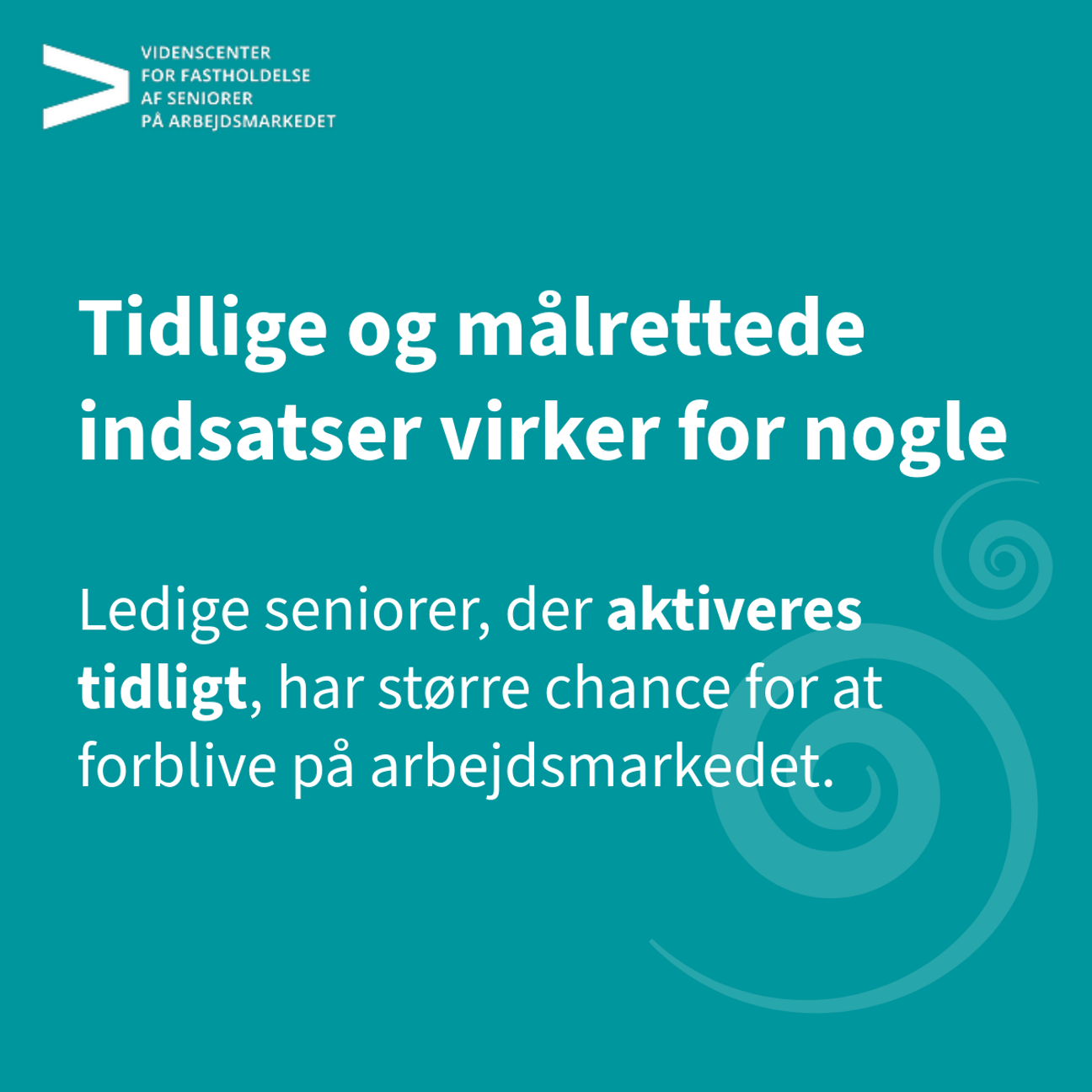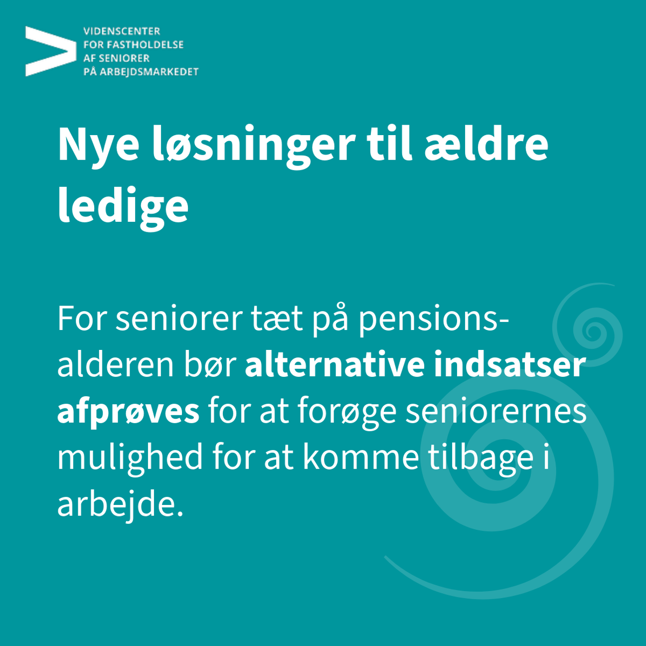 Den aktive beskæftigelsesindsats spiller en vigtig rolle, når ledige seniorer skal tilbage i job. Selvom forskningen på området er sparsom, tyder analyser på, at alder har stor betydning for både deltagelse, effekt og udfald af beskæftigelsesindsatsen. Dertil kan ledige seniorer ofte stå over for særlige udfordringer på arbejdsmarkedet. Når pensionsalderen nærmer sig, kan motivationen for uddannelse, jobsøgning og aktivering være lavere, fordi tilbagetrækning fremstår som et mere realistisk alternativ. Samtidig oplever ældre ledige, at de generelt får færre jobtilbud, da arbejdsgivere ofte er mere tilbageholdende med at ansætte personer tæt på pensionsalderen.