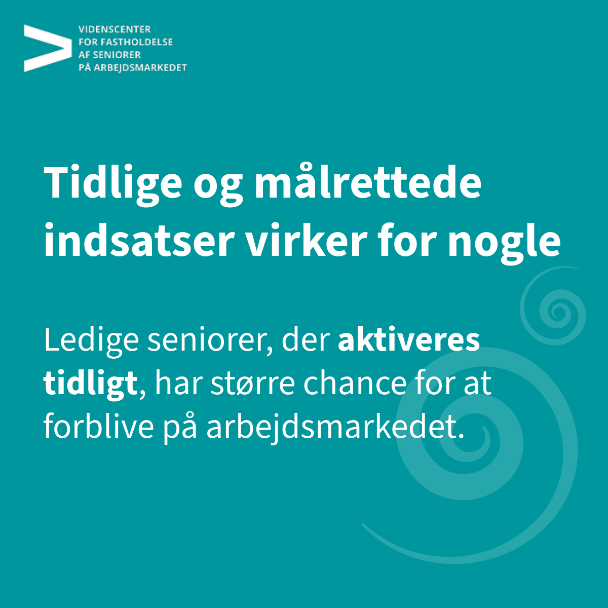 Den aktive beskæftigelsesindsats spiller en vigtig rolle, når ledige seniorer skal tilbage i job. Selvom forskningen på området er sparsom, tyder analyser på, at alder har stor betydning for både deltagelse, effekt og udfald af beskæftigelsesindsatsen. Dertil kan ledige seniorer ofte stå over for særlige udfordringer på arbejdsmarkedet. Når pensionsalderen nærmer sig, kan motivationen for uddannelse, jobsøgning og aktivering være lavere, fordi tilbagetrækning fremstår som et mere realistisk alternativ. Samtidig oplever ældre ledige, at de generelt får færre jobtilbud, da arbejdsgivere ofte er mere tilbageholdende med at ansætte personer tæt på pensionsalderen.