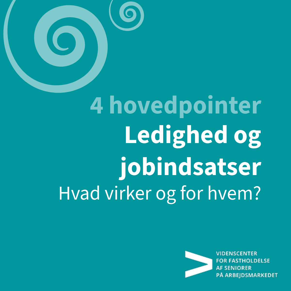 Denne rapport fokuserer på, hvordan ledige seniorer i alderen 50-65 år klarer sig på arbejdsmarkedet, hvilke indsatser de modtager, og hvilken betydning lovgivningen har for deres muligheder. Rapporten undersøger, hvilke effekter forskellige typer af beskæftigelsesindsatser har på seniorernes chance for at komme tilbage i job.
