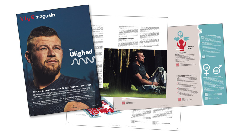 I dette VIVE-magasin sættes fokus på uligheden i Danmark. Du kan blandt andet læse om udviklingen i den økonomiske ulighed, et opgør med geografisk ulighed i sundhed og lægefordeling og zoome ind på viden om ulighed i forhold til køn, seksualitet og etnicitet. Kom tæt på de menneskelige konsekvenser af et socialt skævt sikkerhedsnet i sundhedssystemet, eller læs om udfordringerne for nogle af de allermest udsatte borgere. Find også artikler om skolebørns forskelligartede muligheder for støtte på tværs af kommuner og nogle af de mest udtalte uligheder i vores videregående uddannelsessystem – og meget andet.